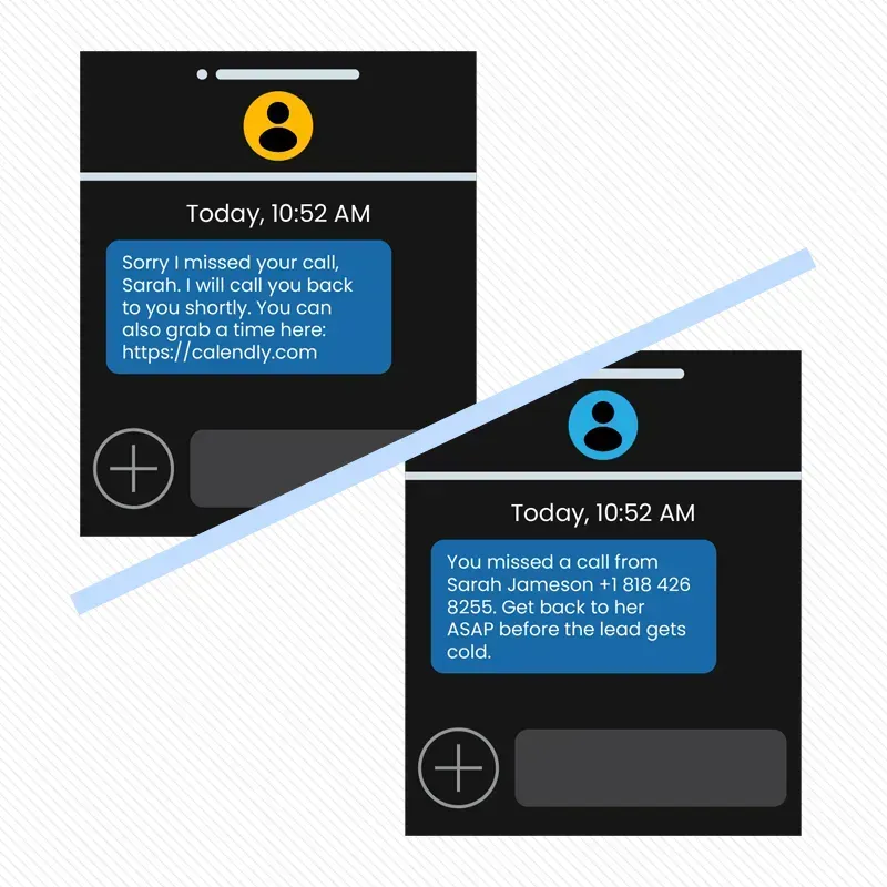 Automatic Text Back: As soon as a call is missed, our system automatically sends a personalized text, letting the caller know you’ll be in touch. This keeps them interested and prevents them from calling a competitor.